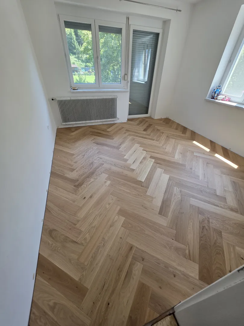 Die Verlegezeit hängt vom Material, der Fläche und dem Zustand des Untergrunds ab. Während Laminat oder Vinyl oft innerhalb eines Tages verlegt werden können, dauert es bei Parkett – insbesondere mit Schleif- und Versiegelungsarbeiten – meist länger. Ihr Bodenleger gibt Ihnen eine genaue Einschätzung.