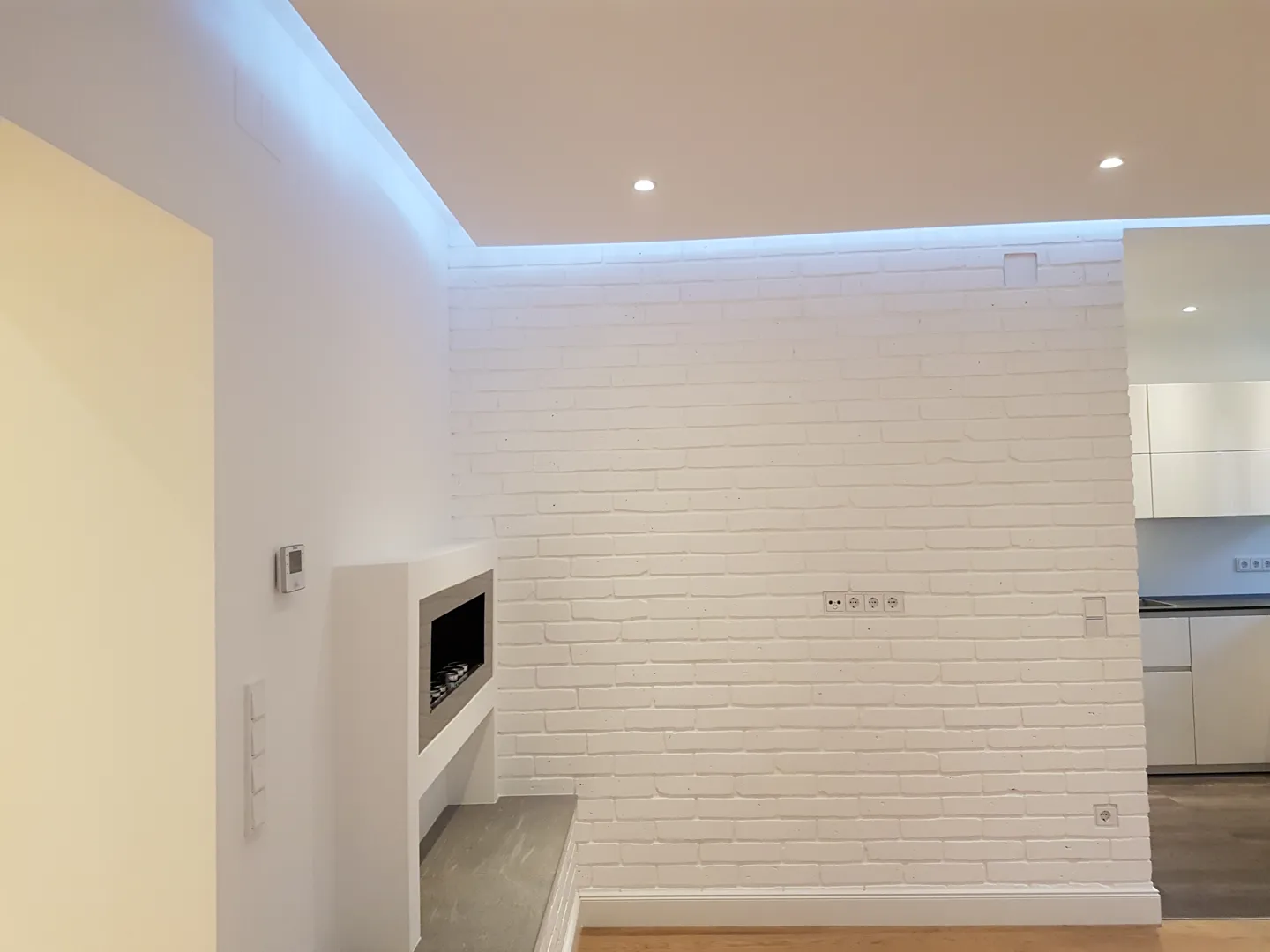 Die Steckdose für den Backofen muss zuerst weiter oben an der Wand versetzt werden. Nachdem die Küche eingebaut ist (am 29 September), soll der Backofen (Bosch HBAB3) dort angeschlossen werden. Außerdem soll ein Badezimmerspiegel mit Beleuchtung montiert werden und zusätzlich eine Deckenleuchte (Philips Hue).“