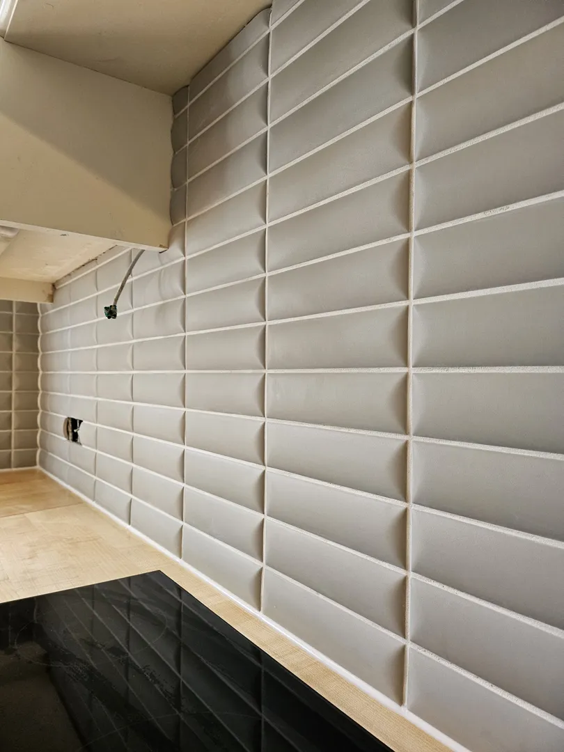 Fliesenverlegung in Küche mit Fischgrät-Optik