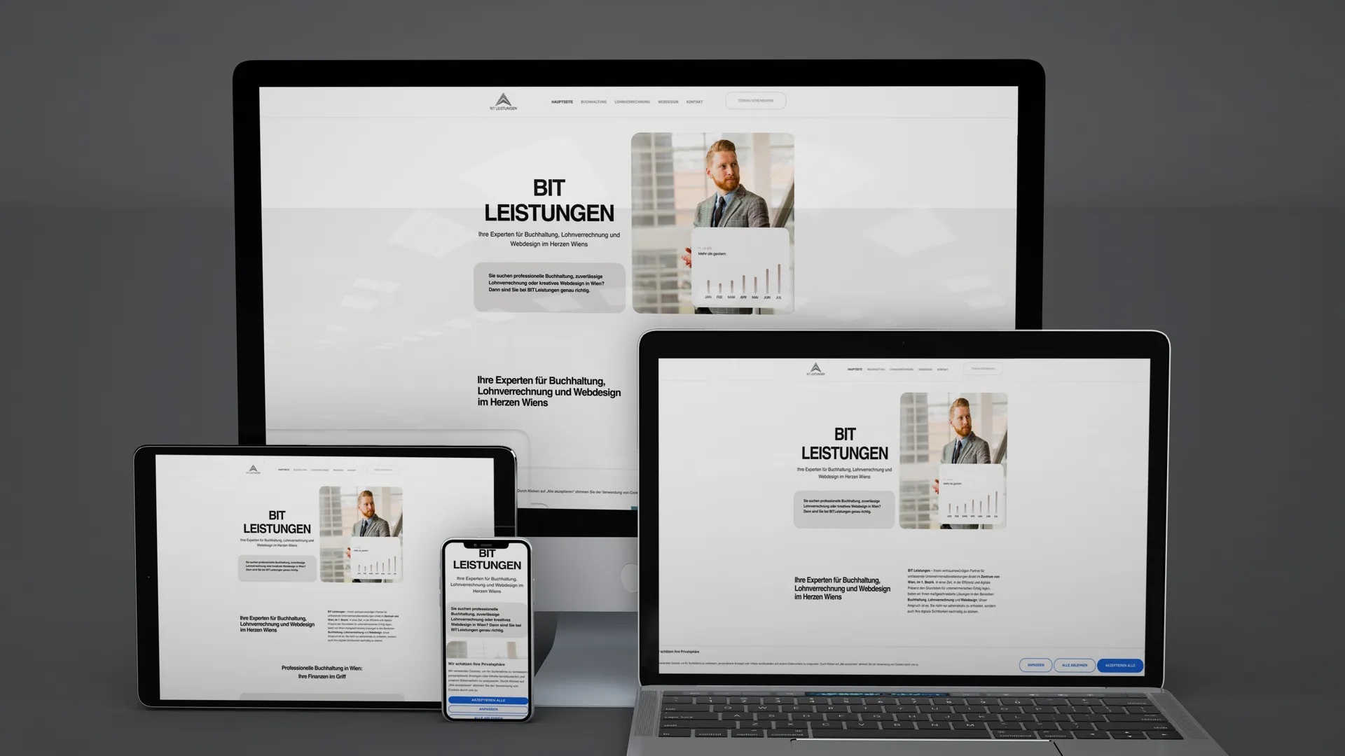 Unternehmenswebsite mit Logo und Angebotsfunktionen