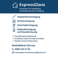 Über uns: ExpressGlanz Hausbetreuung steht für Zuverlässigkeit, Gründlichkeit und persönliche Betreuung rund ums Haus. Wir bieten umfassende Dienstleistungen, damit Ihre Immobilie stets in bestem Zustand bleibt – sauber, gepflegt und einladend.