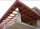 Dafür soll ein Teil des Dachstuhls saniert werden. Ethernit abtragen, neue Unterspannbahn aufbringen, Vollschalung für Prefa herstellen. Verlängerung des Dachstuhls im Berreich Dachterasse, Wand. . (F im Plan) Fläche F-J im Plan Weiteres ein Dachstuhl neu gebaut und ebenso mit Vollschalung versehen. (Fläche A-E im Plan. Abbruch des alten Dachs erfolgt bauseits.