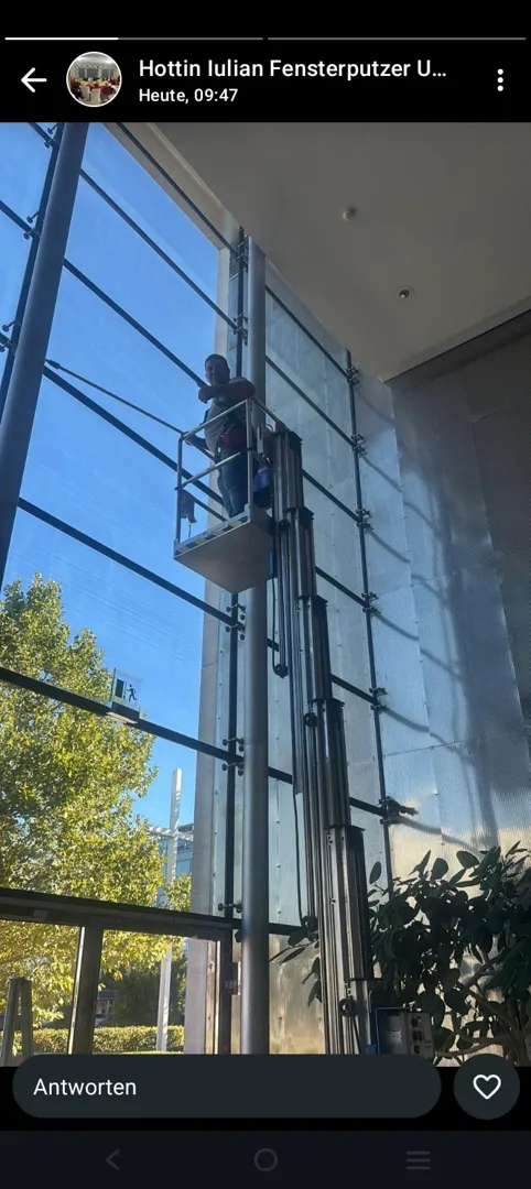 Es braucht dringend eine Reinigung vom Wintergarten, Höhe bis zu 4 Meter, mindestens Innenreinigung. Unten 4 große Glasflächen, oben noch mal 4 große Glasflächen. Inklusive Decke und Rahmen. Küchenreinigung, Reinigung der Wände, Decke und der Klimaanlage. Wohnzimmer Reinigung teilweise der Wände, Boden in jedem Raum, Montage von Wohnzimmer Deckenlampe und eine Badezimmerspiegels. Viel Staub und Schmutz dadurch Wintergarten, Dachgeschoss und länger keine Grundreinigung. Reinigung von zwei Galerie Bereichen und einem Badezimmer und einem Schlafzimmer. Reinigung der Eingangstür, Badezimmertür und Schlafzimmertür.