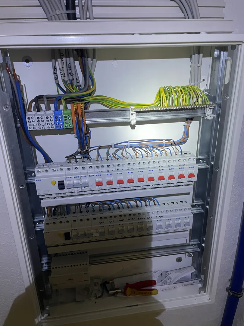 Anschluss/Installatikn eines neuen Sicherungskasten. Zusätzliche Installation einer Starkstromsicherung für einen E Durchlauferhitzer und später für die Induktionskochplatte in der Küche. Insgesamt sollen 3 Stromkreise im späteren Verlauf für die Wohnung angeschlossen werden. Die Elektroleitungen werden noch installiert, teilweise sind die alten Leitungen noch aktiv, die ebenfalls getauscht werden.