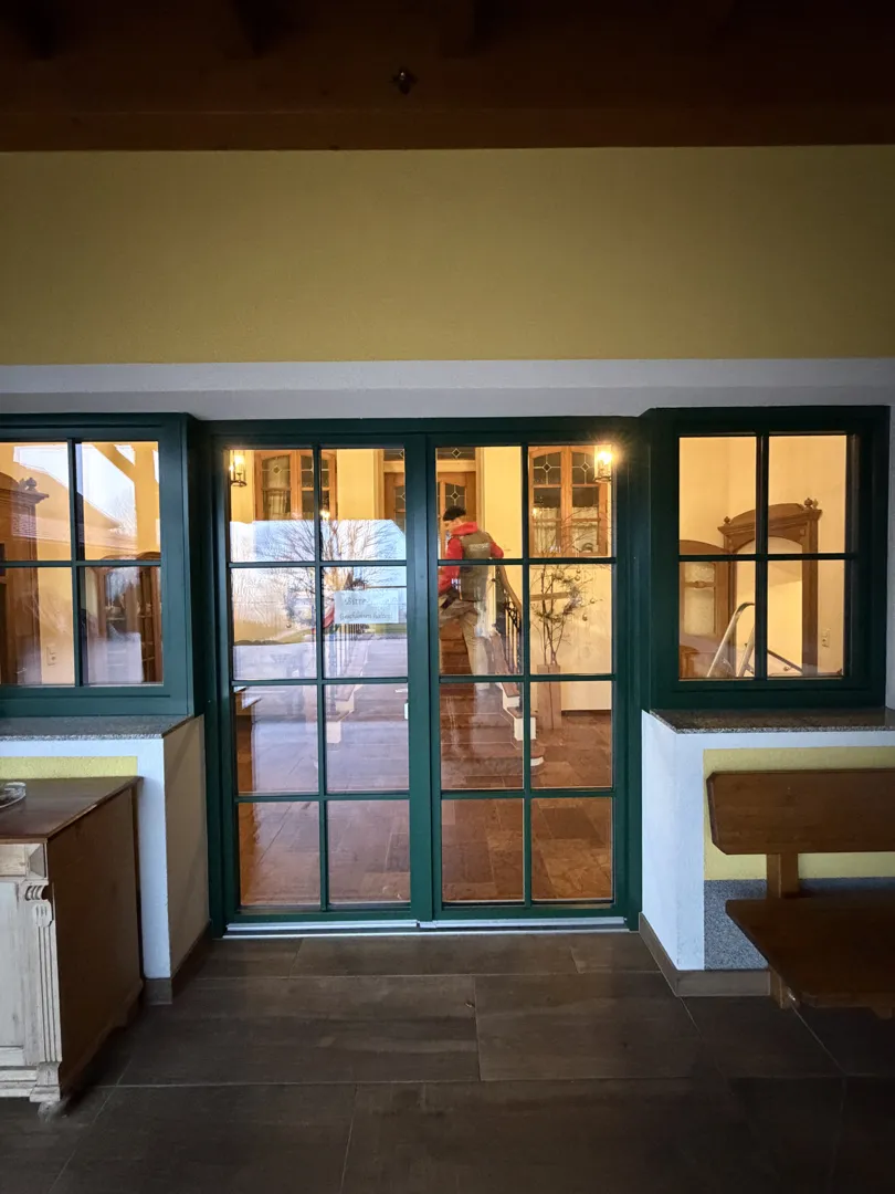 Zwei Altbau Eingangstüren müssen repariert und teilweise restauriert werden. Bei der einen Tür muss ein Stück einer Leiste ersetzt werden und bei der anderen Tür die Leiste angenagelt werden. Sie wurde durch einen Einbruchs Versuch gelöst