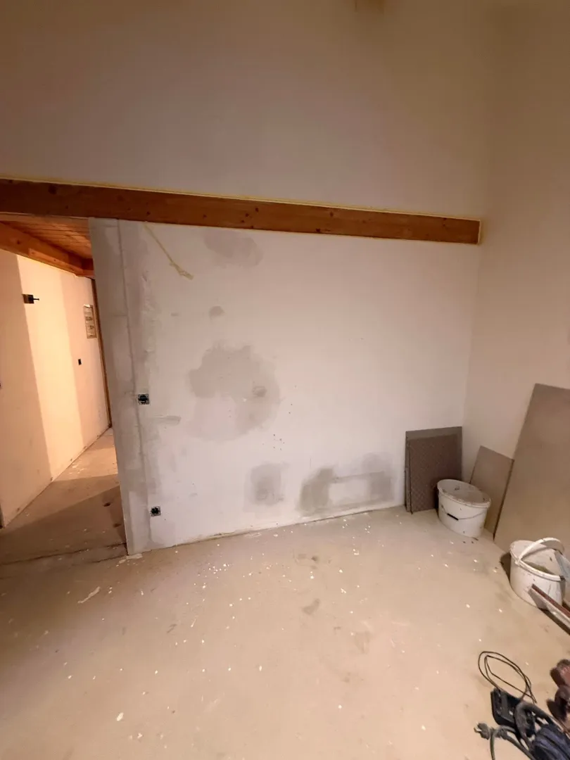 Entfernen Laminat 75 qm Entfernen Fliesen in WC und Bad: 1,7 und 5,5 qm, Entfernen Badewanne Vorbereiten Wände WC und Bad für Fliesenleger Durchbruch Wand breit, hoch und verputzen Vorbereiten Wände (Styroporstuck entfernen, kleinere Spachtelarbeiten) Malen von Wände und Decken, 75 qm Wohnfläche. Zeitfenster: 1.-8.6.25, verbindlich und garantiert.