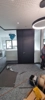 Schlafzimmer hellblau,Decke weiss,eine Wand mit Tapete,restliche Wohnung weiss