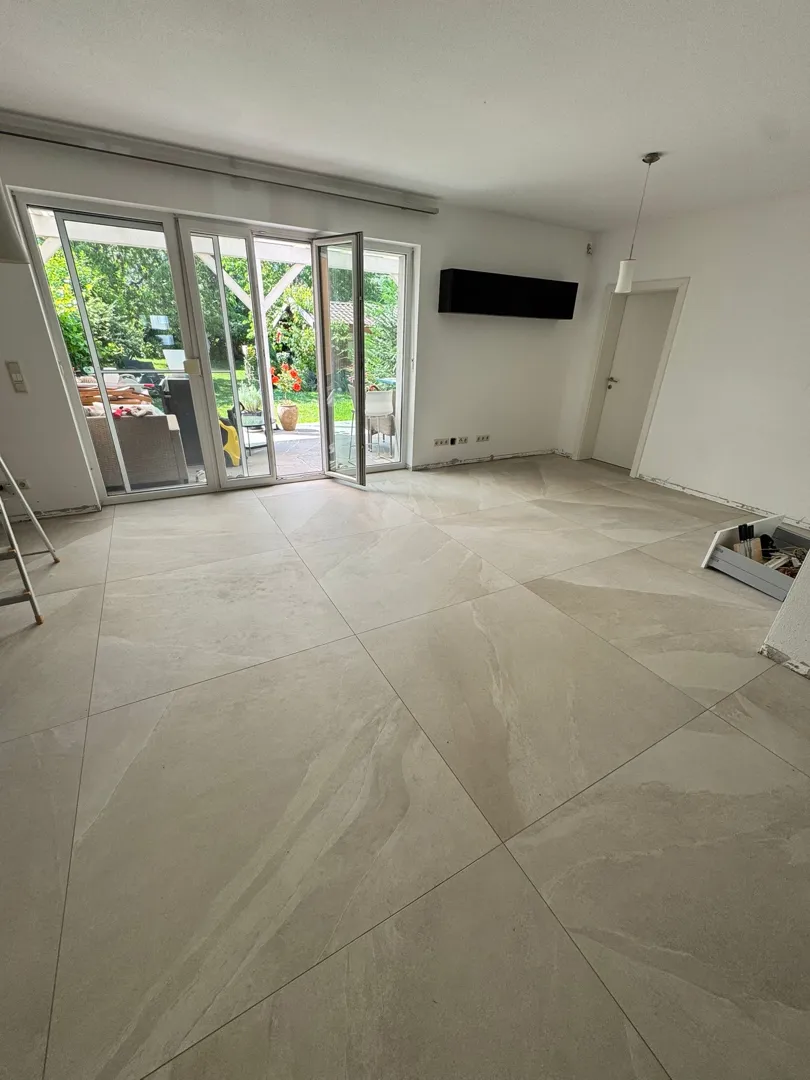 Fliesen auf neuen Estrich (geschliffen), 20m2 (Flur, Bad, WC) eventuell im Eingangsbereich noch mal 20qm dazu (2x Flur, 2x WC, Garderobe). Fliese Elios Sedimenti oder Marazzi Character 60x. Sockelleisten müssen geschnitten werden, können aber ggf. auch vorgeschnitten werden. Verlegung gewünscht 1.-5. Dez.