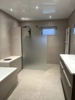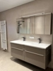 Verlegung im Dünnbett Fugenfarbe Bahamabeige Boden- und Wandliesen: Canova Limestone Projektort Liefering/Salzburg /cm 12,00m2 Bodenfliesen 31,50m2 Wandfliesen 7.50lfm Sockel aus Canova Limestone 6,00lfm Winkelschienen Alu eloxiert 1Pa Gefällekeilprofil links