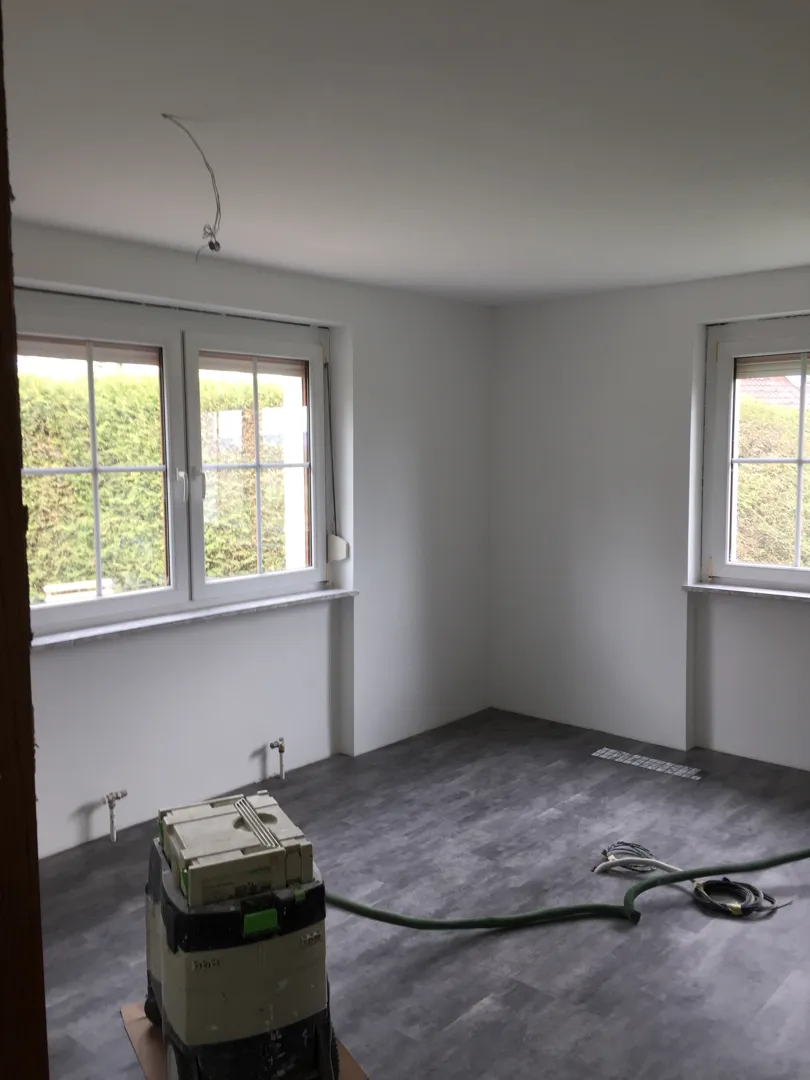 Entfernen Laminat 75 qm Entfernen Fliesen in WC und Bad: 1,7 und 5,5 qm, Entfernen Badewanne Vorbereiten Wände WC und Bad für Fliesenleger Durchbruch Wand breit, hoch und verputzen Vorbereiten Wände (Styroporstuck entfernen, kleinere Spachtelarbeiten) Malen von Wände und Decken, 75 qm Wohnfläche. Zeitfenster: 1.-8.6.25, verbindlich und garantiert.