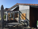 Holz-Balkongeländer, 3 Jahre alt, bestehend aus 3 bzw 5 horizontalen Brettern, einem 18 cm breiten Brett für den Blumentrog und fallweise einer Abdeckung oben. Abschleifen, 2x streichen mit Lasur Adler Pullix 3 in 1, Basis W30, incl. aller Arbeiten wie Abdecken, Fahrtkosten etc., Preis Regiestunde EG, 1. OG, 2.OG laut Fotos Ca 80 lfm, davon 50 lfm mit 3 Brettern, 30 lfm mit 5 Brettern, Abdeckung ca. 20lfm. ALTERNATIVANBOT: NUR EG 5,5 lfm mit 3 Brettern EG 5,5 lfm mit 5 Brettern 1.OG 3,5 lfm mit 3 Brettern 2.OG 3,5 lfm mit 3 Brettern 2.OG 11,5 lfm mit 5 Brettern Abdeckung ca. 10lfm Ausführung bis September