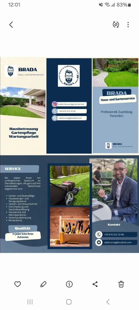 Über uns: Professionell..Zuverlässig..Persönlich.. Garten-und Rasenpflege! Hausbesorger-und Reinigungsdienst! Hecken-und Strauchschnitt! Entrümpelung-und Haushaltsauflösung! Hausservice-und Kleinreparaturen! Ferienhausbetreuung! Malerarbeit! Winterdienst! Qualität in jeder Ecke ihres Zuhauses!!